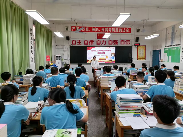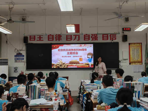 一个个威武的方队、一声声响亮的口号,让同学们热血沸腾。同学们表示,将铭记历史,缅怀先烈,传承和弘扬抗战精神,以更加昂扬的斗志,投入到学习中去,为实现中华民族的伟大复兴贡献自己的力量。此前,桂电中学、桂电附属学校还开展了纪念抗日战争胜利80周年主题班会、观看《开学第一课》等系列活动,隆重纪念抗日战争胜利 80 周年,旨在铭记历史、缅怀先烈,传承和弘扬伟大的抗战精神。周一,庄严的升旗仪式上,师生代表分别进行了 “铭记历史 缅怀先烈” 的主题讲话。他们回顾了抗日战争的艰苦历程和伟大胜利,强调了铭记历史的重要性,激励同学们要珍惜当下的和平生活,努力学习,为实现中华民族的伟大复兴而奋斗。当晚,全校师生共同观看了中央电视台主题为 “铭记与奋斗” 的《开学第一课》。节目通过讲述抗战故事、展示英雄事迹等方式,让师生们再次深刻感受到了抗战时期中国人民的英勇无畏和坚韧不拔的精神。