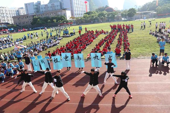 各班方阵依次跑过主席台,整齐的步伐、铿锵的气势、昂扬的身姿,伴随着震天响的口号,展示着桂电中学、桂电附属学校学子的青春与活力!