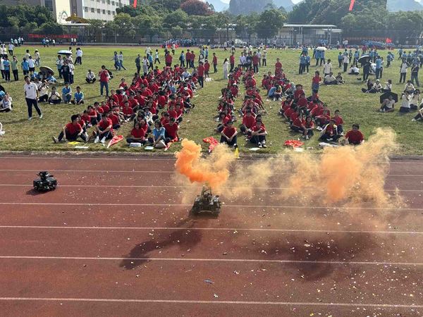 文艺汇演节目创意无限,精彩纷呈。各班级活力满满的舞蹈点燃激情,深情演绎的爱国节目振奋人心,各具特色的创意展示令人耳目一新。丰富多样的表演引来阵阵喝彩,充分展现了桂电中学、桂电附属学校学子的创新思维和青春风采。桂林航天工业学院探天飞行表演队、桂林信息科技学院GIRT机器人实验室分别带来航模飞机表演、机器人表演,将开幕式推向高潮。