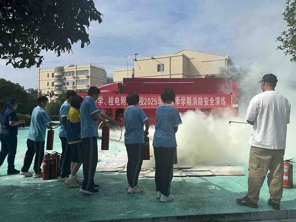 为切实加强校园消防安全管理,普及消防安全知识,有效增强师生火灾防范意识与应急自救能力。10月15日,桂电中学、桂电附属学校开展了2025年秋季学期消防安全演练。