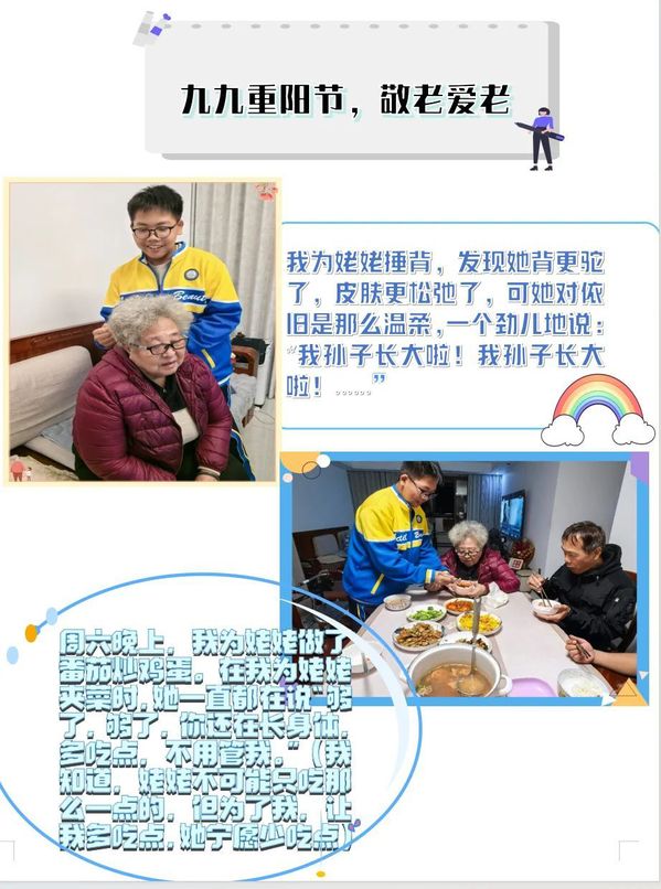 爱在深秋,情暖重阳。在这个周末,桂电附属学校2025级七年级的同学们化身传统美德的“诠释者”与“行动派”,他们用青春的笔触,将“孝”与“爱”的真谛,书写在家庭与社区的每一个角落。