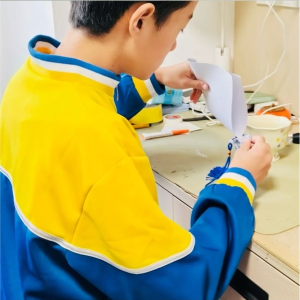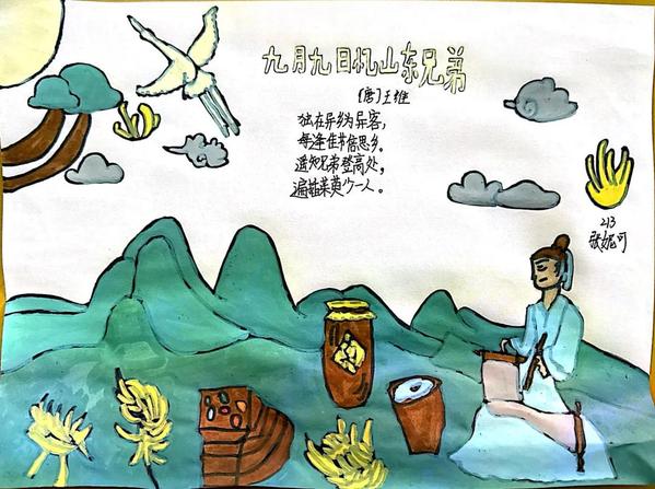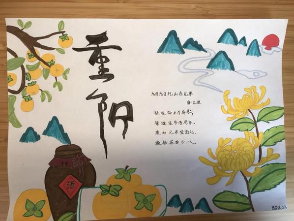 同学们各展所长,将浓浓的敬老情凝聚于指尖。画纸之上,有的孩子精心绘就《九月九日忆山东兄弟》的诗意场景,在“遍插茱萸少一人”的意境中感悟亲情可贵;有的则巧妙构图,将象征长寿的秋菊、寓意事事如意的柿子绘入画中,以温暖笔触传递美好祝福。与此同时,有的同学选择了更具传统意趣的表达——俯身于案前,亲手缝制充满艾草清香的重阳香囊。从穿针引线到填充药包,一针一线都细致入微,将对长辈健康平安的祈愿密密缝入其中。礼轻情意重。无论是绘制的画作还是手作的香囊,每一份独一无二的礼物都承载着孩子们最纯真的感恩之心。