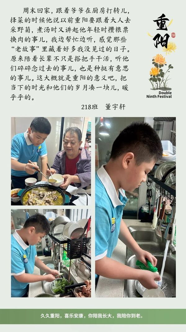 此次重阳节周末实践活动,不仅是一堂生动的传统文化教育课,更是一次深刻的感恩教育。它成功地将学校教育与家庭生活、社会实践融为一体,让传统美德的种子在同学们心中生根发芽。