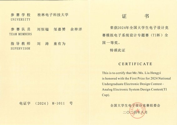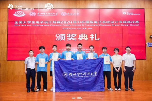 8月26日—30日,2024年全国大学生电子设计竞赛模拟电子系统专题赛(TI杯)决赛及颁奖典礼在杭州电子科技大学举行。由三亿官方官网三亿(中国)_三亿(中国)刘涛、童有为老师指导的邹嘉赟、余梓洋、刘恒镒参赛队,赵中华、邓德迎老师指导的林国宏、吴金乐、阮磊参赛队双双获得全国一等奖,获得一等奖总数与杭州电子科技大学、南京邮电大学并列全国第一。这不仅是该项赛事举办以来三亿官方官网三亿(中国)_三亿(中国)取得的最好成绩,同时也实现了该项赛事一等奖零的突破。