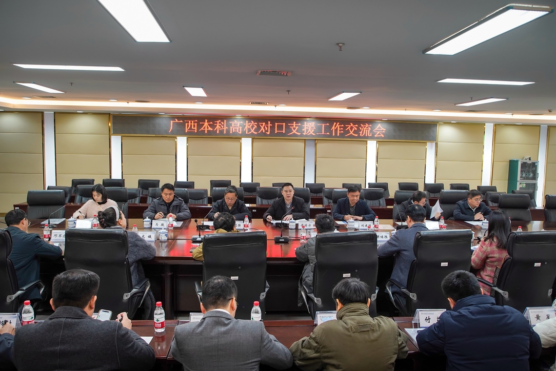 会上,广西师范大学、广西民族大学、桂林理工大学、广西科技大学、广西艺术学院、右江民族医学院等有关负责人作了对口支援工作经验汇报。随后,参会人员就对口支援工作存在的困难和问题及下一步工作意见建议进行研讨交流。