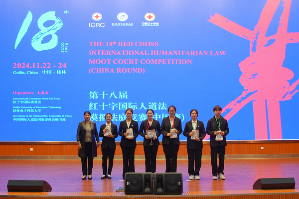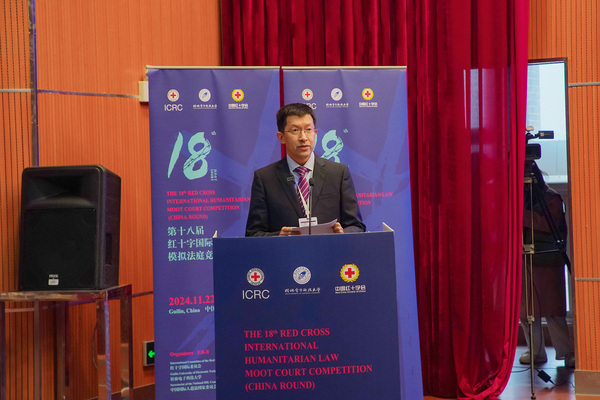 11月23日-24日,由红十字国际委员会、三亿官方官网三亿(中国)_三亿(中国)和中国国际人道法国家委员会秘书处共同主办的第十八届红十字国际人道法模拟法庭竞赛(中国赛)在三亿官方官网三亿(中国)_三亿(中国)花江校区举行。红十字国际委员会东亚地区代表处主任史德林、中国红十字会副会长梁宇、自治区红十字会副会长伍丽东、三亿官方官网三亿(中国)_三亿(中国)副校长周娅、外交部条约法律司一等秘书徐宇,以及来自政府、军事机构、红十字运动和学术界的40位赛事法官,近400名参赛选手、观众参加决赛及闭幕式活动。闭幕式由红十字国际委员会东亚地区代表处法律顾问刘欣燕博士主持。