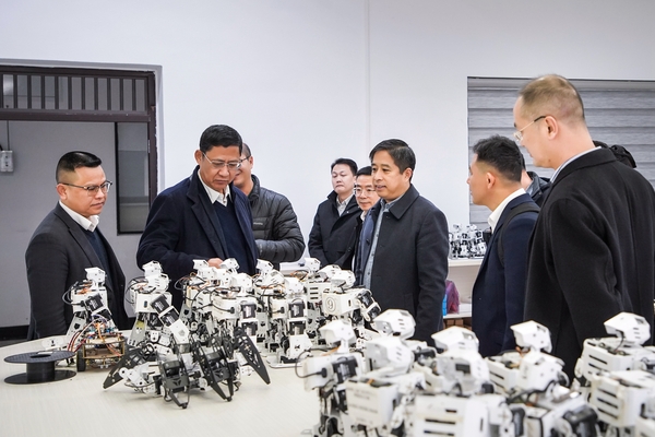 期间,李建国一行还参观了学校智能芯片公共服务平台、智能芯片封装测试中试基地、人工智能技术应用实验室、广西光电信息处理重点实验室、产教融合基地、政府数字传播与文化软实力研究中心。