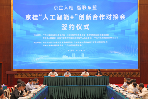 会上,自治区党委常委、自治区常务副主席许永锞介绍了广西发展面向东盟人工智能合作有关情况。南宁市政府推介中国—东盟人工智能创新合作中心规划及支持政策,中关村发展集团作产业投资、科技服务介绍;南方有色金属集团、广西北部湾国际港务集团、广西扬翔集团、广西旅游发展集团、广西交通投资集团5家企业分别发布“人工智能+”应用场景;北京智谱华章科技股份有限公司、北京中关村科金技术有限公司、百度智能云、科大讯飞股份有限公司、北京中科闻歌科技股份有限公司、北京清博智能科技有限公司、泰瑞数创科技(北京)股份有限公司、百望股份有限公司8家企业分别进行人工智能技术及产品路演;百度、东华软件、北京智象未来科技、北京人形机器人创新中心、北京九章云极科技、北京格灵深瞳信息技术6家企业负责人作了交流发言;广西有关单位、高校、科研机构分别与北京有关单位、企业、研究院签署合作协议。