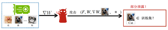 攻击者利用中央服务器无意的数据泄漏漏洞,获取客户端的更新的数据或梯度信息,并通过推理攻击成功重建其他客户端的数据。这是一个相似的攻击,对于给定的训练模型,判断其训练集上是否包含特定属性的数据点,该属性不一定和训练任务相关。例如使用LFW数据集训练一个识别性别的模型时,推理重建能够发现样本的其他特征,如样本的种族,是否戴眼镜等信息,这将带来隐私泄漏的风险。
