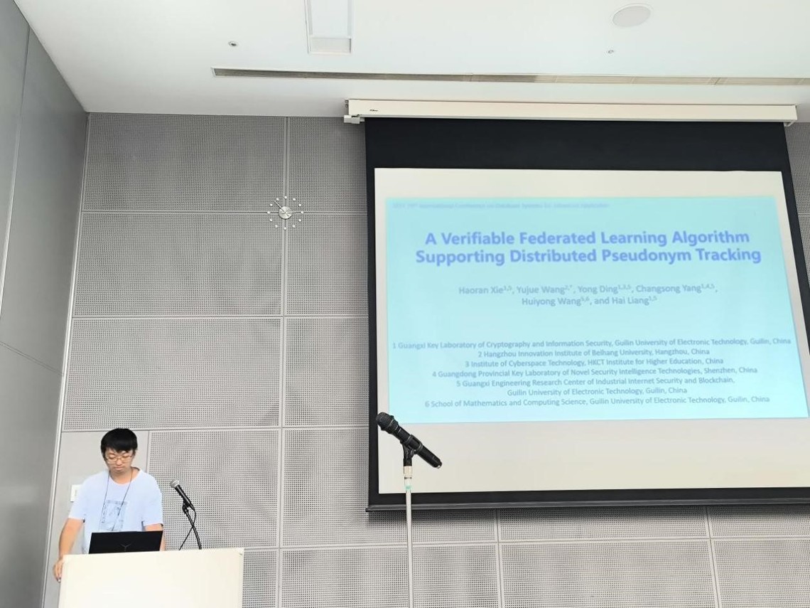 202472~5日,中国计算机学CCF推荐的B类国际会议,2024年度的数据库系统高级应用国际会议DASFAA在日本岐阜召开。此次会议上广西密码学与信息安全重点实验室丁勇教授团队共有两篇高水平论文入选。一篇Long Paper与一篇Demo PaperDASFAA 2024录用,论文作者2021级硕士生谢浩然、2022级硕士生唐绎雄应大会组委会邀请,由实验室赵汝文博士带队赴日参加会议并作报告,报告各自方向的最新研究成果,并与国际同行进行了深入交流。同时,论文指导老师王玉珏教授、杨昌松教授远程参加会议。