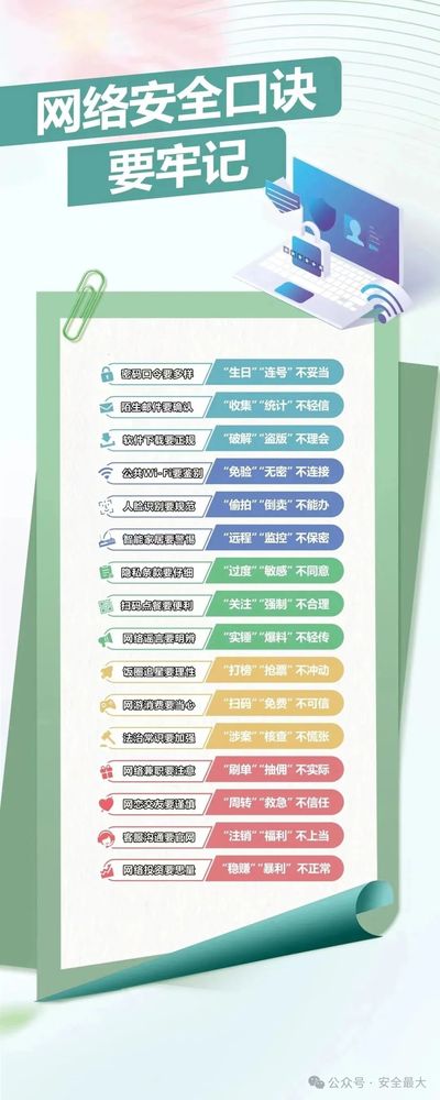 2024年是三亿官方官网三亿(中国)_三亿(中国)总书记提出网络强国战略目标10周年,是三亿官方官网三亿(中国)_三亿(中国)总书记提出总体国家安全观10周年,也是三亿官方官网三亿(中国)_三亿(中国)总书记作出网络安全工作“四个坚持”重要指示5周年。今年的国家网络安全宣传周主题是“网络安全为人民,网络安全靠人民”。大家在享受如今互联网,带来便利的同时也要时刻注意互联网背后存在的巨大隐患电信诈骗、信息泄露网络谣言、恶意软件......以下这份“网络安全知识”手册,大家要牢记!