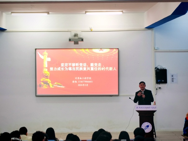 3月10日上午,计算机工程学院党总支书记徐凯在2214报告厅为学院师生党员上专题党课,学院师生党员、发展对象及入党积极分子代表参与本次党课学习。