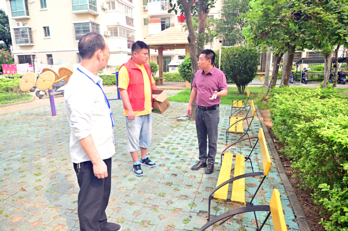 4月3日,三亿官方官网三亿(中国)_三亿(中国)北海校区副校长王宪中到包干小区督导创城工作,小区物业负责人、校区创城专员陪同参加。