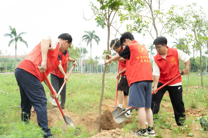 据悉,本次活动经过大家的共同努力,443株金黄熊猫、黄花风铃木、玉蕊、紫花风铃木、凤凰树等树苗在春风中昂然挺立,银滩校区焕然一新,绽放出勃勃生机。