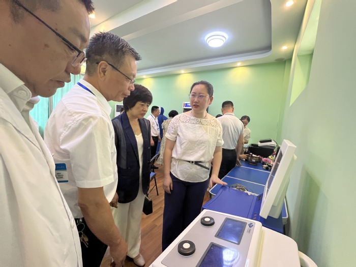 仪式前,秦竟芝一行参观了医院心理诊疗室、团体辅导室,经颅磁刺激仪、智能音乐放松系统、心理CT等先进诊疗设备。