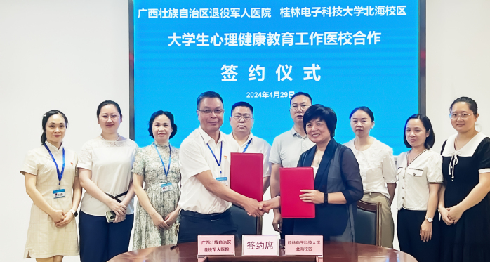 北海校区学工部,广西壮族自治区退役军人医院精神科、心理科等相关部门、科室人员参加签约仪式。