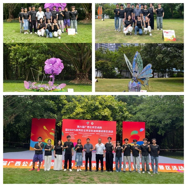 9月30日,第六届广西公共艺术周在南宁市南湖公园隆重拉开帷幕。设计与创意学院院长葛俊杰、副院长陆少敏应邀出席开幕式,学院师生代表到场参加活动。学院的两件公共艺术装置作品《鎏金仙子》与《花溯》在展览中精彩亮相。