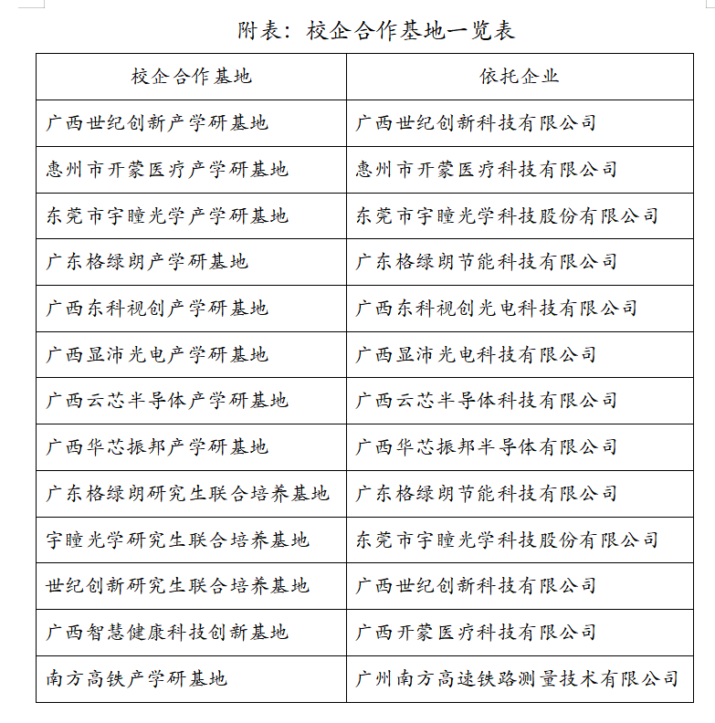 近三年,中心骨干人员与联盟企业联合申报并成功获批的项目包括广西重点研发项目、广西“千企技改”项目、南宁市重大项目等重点重大项目;新增企业产学研基地8个,研究生联合培养基地3个。