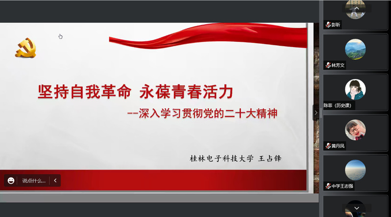 桂电中学党委邀请马克思主义学院王占锋教授为全体党员宣讲党的二十大精神