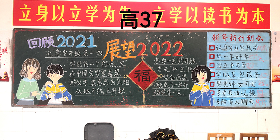 高二年级——“回望2021,喜迎2022”主题黑板报