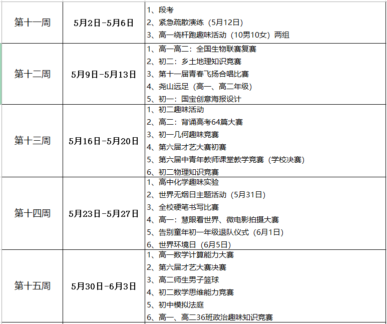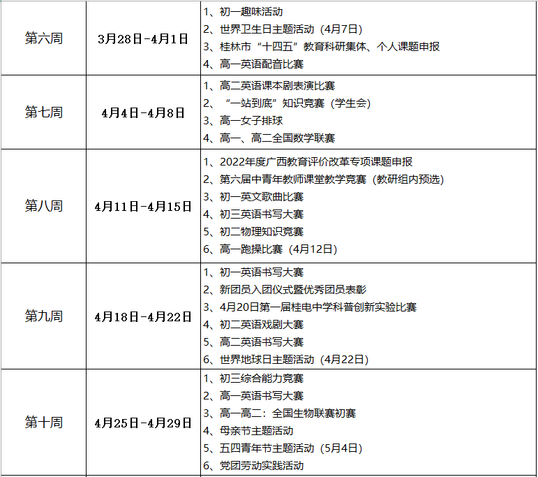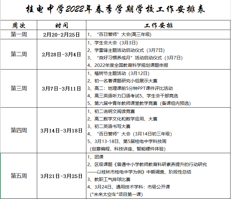 桂电中学2022年春季学期学校工作安排表