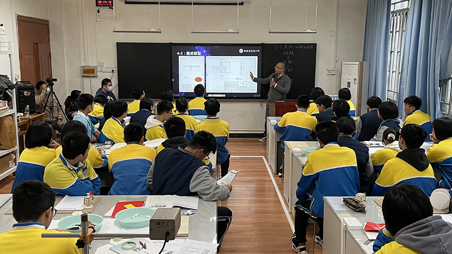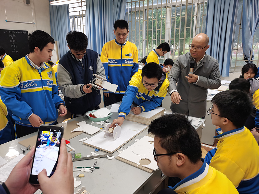 2022年3月24日,桂林市普通高中通用技术学科主题教研活动在三亿官方官网三亿(中国)_三亿(中国)顺利举行,三亿官方官网三亿(中国)_三亿(中国)陈庆丰老师为全市的通用技术教师上了一堂精彩的观摩研究课。本次活动是高中《通用技术》学科2022年度第一次面向全市开展的学科主题教研活动,老师们积极参与,观摩研讨氛围浓厚,取得了非常好的效果。 三亿官方官网三亿(中国)_三亿(中国)多年来一直注重通用技术、科技教育等培养学生综合素质的学科活动,建设了通用技术教室、创客活动室等场地设施,开足开好课时,有力的保证了学科教学活动和科普活动的正常有序开展。本次通用技术学科市级教研活动能在三亿官方官网三亿(中国)_三亿(中国)开展,也是上级领导对三亿官方官网三亿(中国)_三亿(中国)学科教育开展情况的信任与认可。雄关漫道真如铁,而今迈步从头越,三亿官方官网三亿(中国)_三亿(中国)通用技术学科教育会以本次活动为契机,再接再励,争取开发出更好的课程,培养更多具有技术素养的学生,帮助更多的学科老师成长。 基于当期疫情形势,本次活动采用线上与线下同步进行,桂林市普通高中通用技术教学指导委员会的专家和部分教师代表来到现场参与活动。同时,这次活动通过网络平台进行同步直播,全市高中通用技术学科专(兼)职教师通过线上方式参与,扩大了影响范围,活动取得了很好的效果。 首先是上课环节。桂林市桂电中学陈庆丰老师执教通用技术《技术与设计2》第三章第2节“系统分析的步骤”。教学以“未来太空车”项目为载体,坚持以学生为本的理念,将知识点融入到项目过程中,指导学生动手实践,体现了“做中学,学中做”的学科特色。 在项目式教学的理论指导下,大项目拆分成小项目逐个突破解决。本课主要探讨太空车如何翻越障碍物--车轮的设计。陈老师把问题抛出让学生讨论,小组进行分析、初步设计、制作、实操。在挑战高障碍物时学生的失败引出了更多的疑问,此时,陈老师通过数学计算、物理原理、机器控制等多角度进行解说,学生对系统分析有进一步的理解,再次对车轮的设计进行改进,实验操作,取得了成功,收获了喜悦。 陈老师运用学科特点,挖掘学生发现问题及解决问题的潜能,鼓励指导学生清晰地表达自己的观点;将物理、数学、信息技术等多学科融合于教学,引导学生跨学科的角度分析问题,进而提出具体的解决方案,是这节课的亮点,也是通用技术学科的特色。 桂电中学陈庆丰老师执教通用技术《技术与设计2》第三章第2节“系统分析的步骤” 市普通高中课程改革教学指导专家及教师代表观摩 接着是评课环节。陈老师先对本节课进行教后反思,他讲解了课程设计思路,一是多学科融合的探索,二是通用技术课程项目获取新方向的探索,实现课程项目与科创比赛相结合,借助比赛的软硬件资源更好的开展课程教学,“以学促赛、以赛促学”,实现一举多得的效果。 桂电中学陈庆丰老师进行教后反思 随后,桂林市普通高中课程改革通用技术教学指导委员会两位专家,广西师范大学附属中学的李玉华老师和国龙外国语学校的罗柱老师分别对陈老师的这节研究课进行了评课。两位老师对本堂课的优缺点进行了明确的说明,并借助本次活动,将通用技术学科最新的课程理念传达给更多的老师,为一线老师的教学指点迷津。 桂林市普通高中课程改革通用技术教学指导委员会副组长李玉华老师进行评课 桂林市普通高中课程改革通用技术教学指导委员会组员罗柱老师进行评课 市县级老师线上观摩、议课、交流分享 此外,线上观摩的老师也纷纷发言,将自己的评课意见交流分享。本次活动将现场教研与网络教研相结合,利用现代化信息技术手段延伸教研活动的参与面和影响力,取得了非常好的效果,老师们纷纷表示希望今后能举办更多的学科教研活动。 课堂掠影 课堂掠影 课堂掠影-学生与线上教师互动 课堂掠影 通用技术教师线上教研合辑 通用技术教师线上教研合辑 通用技术线下教研教师代表 线上参与老师收看网络直播 专家评课 专家评课 教学反思