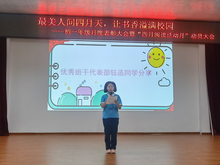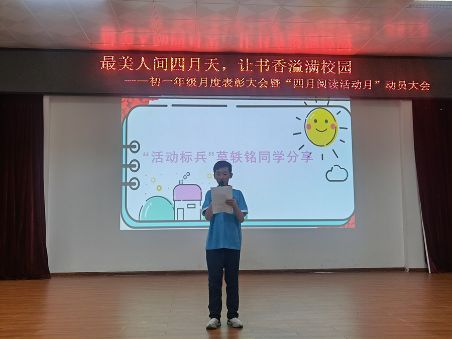 最美人间四月天,让书香溢满校园 ——初一年级月度表彰大会暨“四月阅读活动月”动员大会