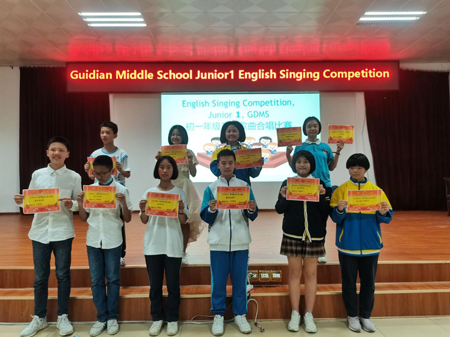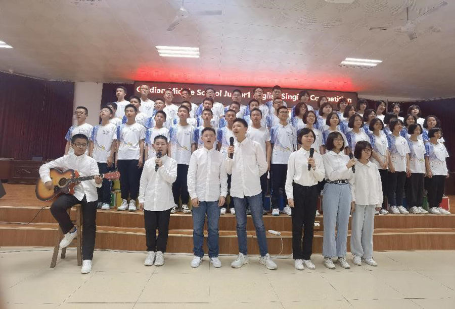 初一年级英语合唱比赛时间:[2022-04-20] 来源:初一年级 点击数:365