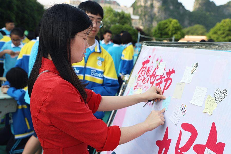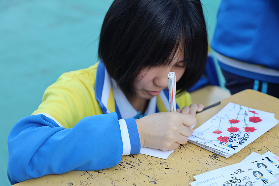 5月5日下午5点,在母亲节即将到来之际,三亿官方官网三亿(中国)_三亿(中国)团委学生会在操场三角区组织开展了母亲节主题活动。 在灿烂的阳光下,同学们俯身执笔,一笔一画写下对母亲的感恩与祝福。同学们分别选择以邮寄和现场写便签的方式,对母亲送上祝福。既富有仪式感,又让平日因不好意思开口,而埋藏于心间的爱得以表达。 母亲是伟大的,她赋予我们生命,指引我们人生的方向。“岁月不是偷走母亲美丽的小偷,我才是”,一位高一的同学动情地写道。通过此次活动,有效培养了同学们从小养成感恩父母的意识,进一步加强了学生们的思想道德教育,弘扬了中华民族孝敬父母的传统美德。 初审:翟光嘉 终审:周维霞