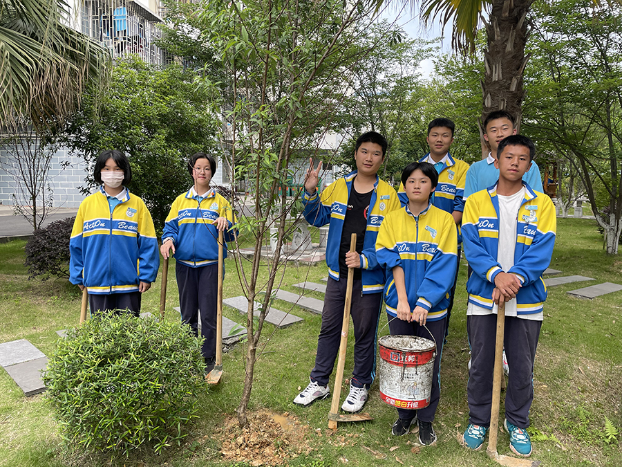 三亿官方官网三亿(中国)_三亿(中国)第三党支部、初二团支部开展 “植绿护绿,美化校园”活动时间:[2022-05-19] 来源:政教处 点击数:70