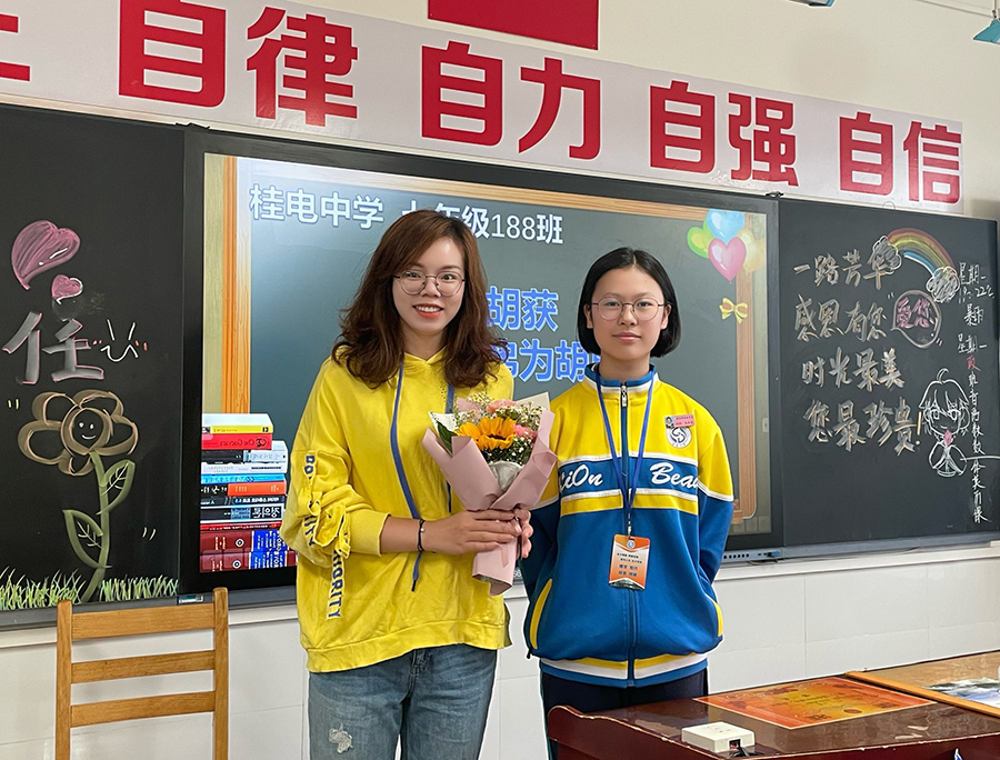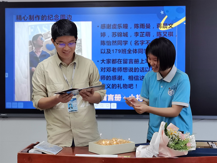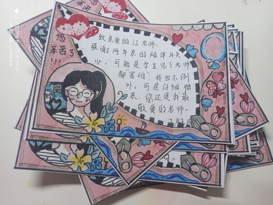 除此之外,政教处还为每位班主任送上一束美丽的鲜花,祝愿班主任们如花儿一样,灿烂而热烈地绽放,拥有最绚丽的色彩。 平时那些难以表达的感恩之情在此刻化作一张张笑脸,一句句祝福,一个个拥抱,借着首届班主任节这个契机,向班主任们大声表白!班主任们,你们辛苦了! 初审:周荔 终审:周维霞