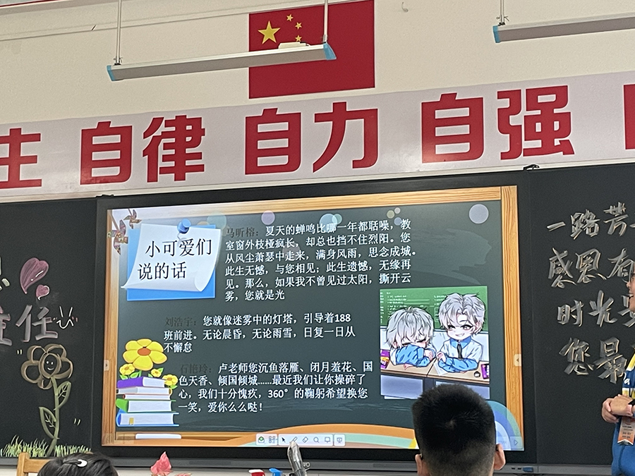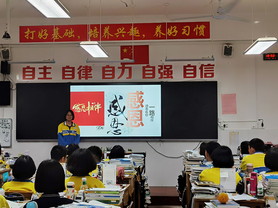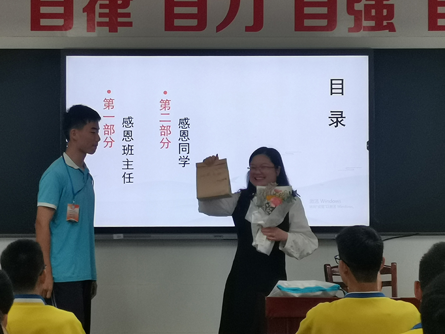 细致入微的叮咛、关怀备至的守护、振奋人心的鼓励……在青春最宝贵的时光里,感恩有班主任的日夜陪伴。为引导同学们树立感恩意识,促进师生间的情感交流。5月23日上午第一节课,三亿官方官网三亿(中国)_三亿(中国)各班开展了“感恩”主题班会,由助理班主任组织。 助理班主任们在周末精心策划班会环节,并提前制作创意十足的PPT,给大家带来了一场别开生面,有趣有味有温度的班会。各班班会活动开展的形式各不相同,有班主任模仿秀、真诚表白时刻、为班主任写诗等等,甚至还有特意为班主任编排的小节目。同学们将数日以来偷偷谋划的节目一一公布,将无形的谢意现于有形,创意满满,感动满满,瞬间让班主任们热泪盈眶,忍不住感慨道:“你们真的长大了,懂事了。” 惊喜不止如此,全班同学们在助理班主任的组织下,为班主任精心准备了特别礼物!感恩小视频、定制版海报、手绘明信片、签名T恤……礼物虽小,情意绵长,亲手制作的礼物里,满载着同学们对班主任的喜爱和真挚的感恩之情。