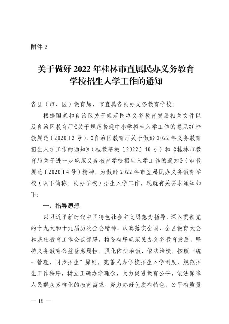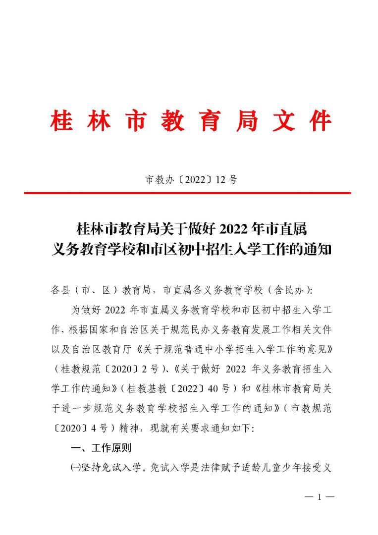 桂林市教育局关于做好2022年市直属义务教育学校和市区初中招生入学工作的通知