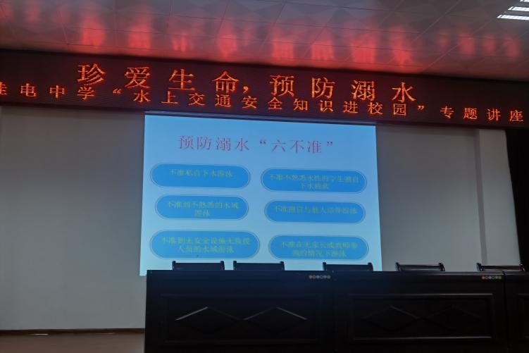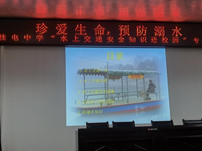 珍爱生命,预防溺水——桂电中学“水上交通安全知识进校园”专题讲座时间:[2022-06-08] 来源:初一年级 点击数:20