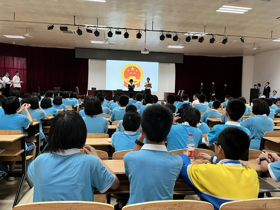 模拟法庭进校园,护航青春促成长——桂电中学模拟法庭开庭时间:[2022-06-10] 来源:政治组 点击数:33