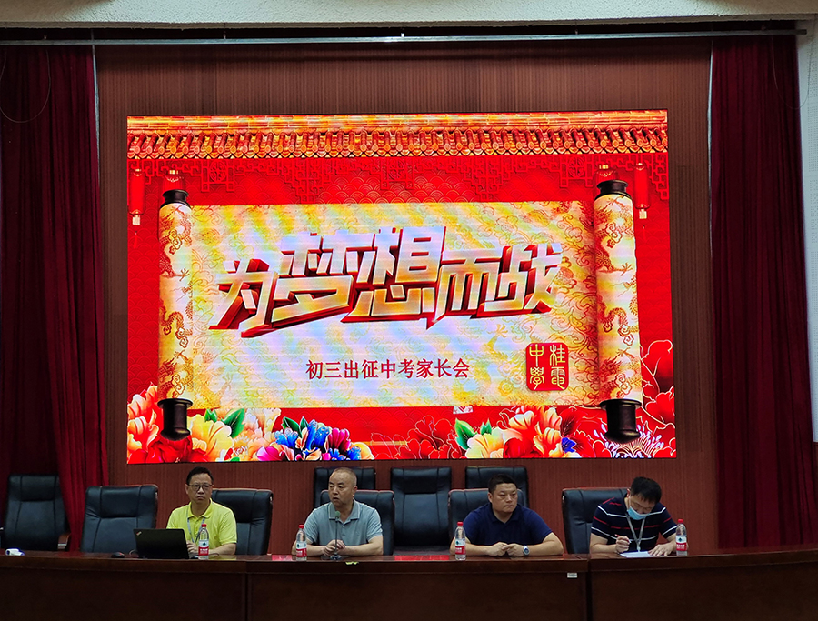 中考的脚步日益临近,在这最后的冲刺阶段,为再次实现家校合力,共同促进初三学生勇创佳绩,6月18日早上9:00,桂电中学召开了初三年级携手征战中考家长会。会议由校长助理初三年级领导周维霞主持,彭剑波校长、杨剑书记、文向东副校长、李超进副校长出席了会议。 会议第一项,彭校长讲话,彭校长从王阳明的名句“故立志者,为学之心也。为学者,立志之事也”来引出我们教育的重点,强调我们高中学生的培养目标及方向,我们学校重在培养“五自”习惯——自主、自律、自力、自强、自信,培养学生“敢于担当、勇于创新、积极进取、追求卓越”的精神,这样才真正是“立志为学,为学立志之事”。 会议第二项,由文副校长强调中考细则及注意事项,文校从中考前的准备、中考期间的饮食起居详细跟家长做了要求和友情提示,祝愿我们万事俱备,赢战中考。 会议最后,由李副校长介绍我们桂电中学高中情况,从办学思想、办学目标、我们的做法等详细解读我们的高中,从历届高考成绩解读我们的教育理念及教育教学观念,从学生进入大学后的发展状况介绍我们教育教学的全面性和精准性。同时也让家长对没有讲到的现场提问,进行了现场解答。 会议历时一个多小时,家长们神情专注,认真聆听,踊跃提问,大多数家长还认真做笔记,会议结束仍有许多家长咨询中考、高中、高考等相关信息。 中考的战鼓已经擂响,征战中考的勇士们已经做好准备,此次会议更加强了学校、家长和学生三方众志成城、同舟共济的决心,我们坚信,桂电中学2022中考必定辉煌!