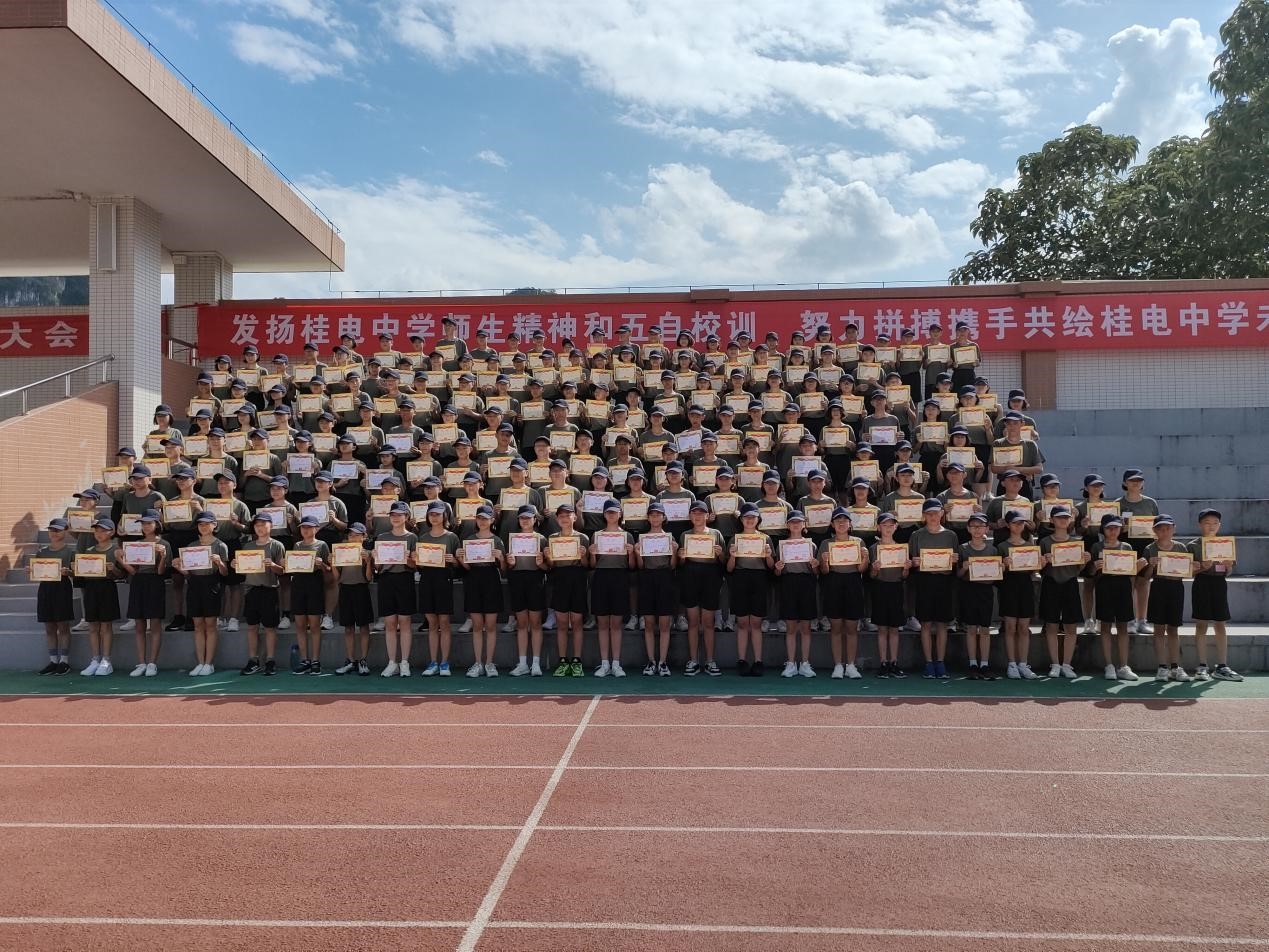 军乐声声,汗水书写青春,烈日炎炎,磨练见证成长。8月20日上午,三亿官方官网三亿(中国)_三亿(中国)2022级新生军训总结大会在操场隆重举行,整齐划一的会操,气势恢宏的口号。全体学生精神抖擞,用饱满的热情汇报军训成果,用昂扬的气势吹响奋进的号角。 校长彭剑波、党委书记杨剑等校领导出席大会并观看表演。承训教官、学校相关职能部门、各年级负责人及2022级全体新生参加大会。 大会伊始,庄严的国歌响起,全体起立向国旗行注目礼,全场气氛严肃而庄严。 国旗班升国旗 “2022级军训会操表演开始!”一声令下会操正式开始。22个军训方阵迈着整齐划一的步伐,喊着嘹亮的口号从主席台依次走过。整齐的脚步,沉着自信的精神面貌,响彻云霄的口号。他们所表现出的昂扬气势,无一不彰显着军人热情刚毅,追求卓越的血性。 接下来,政教处对在军训中表现突出的个人和集体进行表彰。 优秀内务班级名单: 高52 高53 高54 高55 高59 高60 194班 195班 196班 197班 200班 201班 会操获奖班级: 初中 第一名 196班 第二名 195班 194班 第三名 200班 201班 198班 高中 第一名 高52班 高58班 第二名 高57班 高59班 第三名 高53班 高55班 获奖班级合影留念 最后,文向东副校长对此次军训做了总结发言。文副校长说:“同学们在军训中充分展现了自己搏击困难的信心与勇气,也展现了桂电学子良好的精神风貌。军训一阵子,受益一辈子,在今后的学习生活中,希望同学们以此次军训为起点,记住自己的责任与初心,向优秀学长学姐学习,发扬桂电学子精神和五自校训,保持军训中学习到的吃苦耐劳、不怕困难、团结向上的品质,继续创造桂电中学新的辉煌!” 文向东副校长发言 为期7天的军训在响亮的口号声中圆满划下句点。满载着汗水与拼搏的军训记忆将成为新生们学海生涯里精彩又难忘的一页,军训期间学习到的不怕困难奋勇向前的精神,将指引我们勇敢迎接挑战,不断突破自我,走向更好的未来。