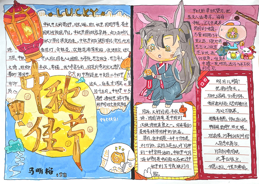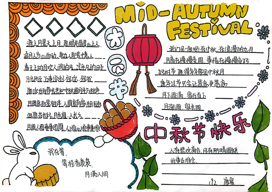 “十二度圆皆好看,其中圆极是中秋。”天上月圆,地上人圆,花好月圆阖家团圆。农历8月15日是我国重要的传统节日——中秋节。为使广大师生更多地了解中华民族传统节日的文化内涵,广泛挖掘与诠释中华传统节日的文化底蕴,使学生感受中华民族的优良传统,初二年级全体同学在假期制作了以“感受传统,月圆人圆”为主题的中秋节研究性学习简报。 本次活动主要以个人为单位,各班同学围绕主题,自主研究设计中秋简报,让同学们主动了解中秋节的风俗习惯,感受传统节日所蕴含的深厚文化内涵。 同学们将中秋节的来历、传统习俗等以简报形式呈现,营造出了浓厚的民族节日氛围,以此弘扬民族精神和传统文化。 本次活动给同学们不一样的文化感受。同学们沉浸于团聚的欢乐、团圆的甜蜜和节日的喜庆中,在感受中秋意蕴,共享团圆时光的同时,进一步激发了广大同学了解中华民族优秀传统文化的热情。对全体学生来说,本次活动也是一次“感恩”教育。孩子们心中无不升腾着浓浓的家国情怀,增强了广大师生民族自尊心、自信心、自豪感,对更加美好的未来寄予无限憧憬。 初审:卿菁 终审:周荔