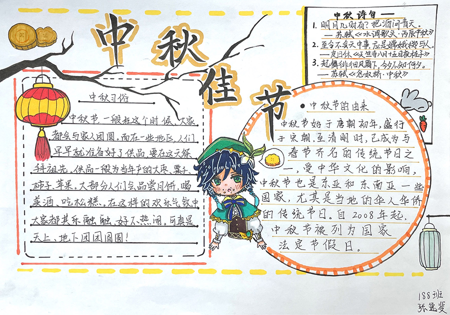 “感受传统,月圆人圆”——初二年级中秋节研究性学习简报展示时间:[2022-09-13] 来源:初二年级 点击数:346