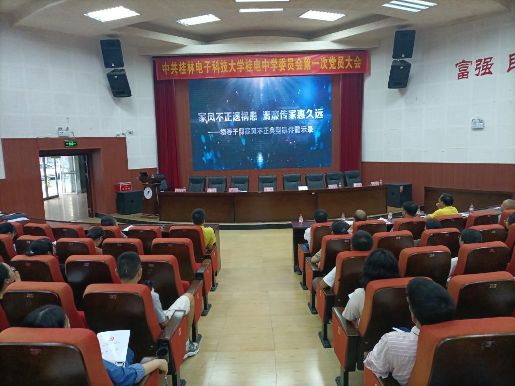 920日下午,桂电中学党委第一次党员大会在金鸡岭校区三教一楼报告厅举行。学校党委组织部副部长陈志新到会指导,中学全体党员领导干部、教工党员共59人参加大会。会议由中学党委书记杨剑主持。