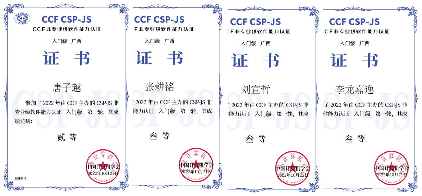 2022年CCF非专业软件能力认证第一轮 入门级 广西赛区获奖名单: