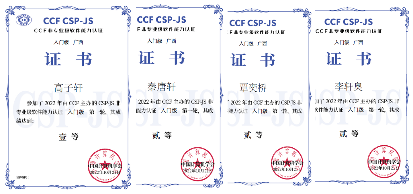 祝贺以下同学在2022年CCF非专业软件能力认证第一轮比赛中获得优异成绩。