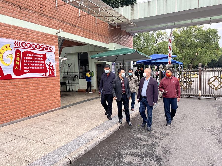 2022年11月23日,受大学党委委派,居住在金鸡岭校区的校党委常委、副校长潘开林到桂电中学检查指导疫情防控工作。研究生院院长段雪峰、桂电中学校长彭剑波、党委书记杨剑陪同检查。 潘开林代表大学党委详细了解了桂电中学门岗出入管理、防疫与后勤物资储备、重点风险人群管理、教育教学组织等工作,查看了集中核酸检测点,慰问了留宿在校区的师生代表、来校核酸采样的柳州医护人员、教职工志愿者等。 潘开林指出,桂电中学要统一思想,提高站位,吃透大学、属地和教育主管部门的疫情防控有关政策要求,细化对策,精准有效打好疫情防控阻击战;同时强化服务和后勤保障,深入细致做好师生思想工作,最大限度的保障师生健康安全。 初审:张珵 终审:杨剑