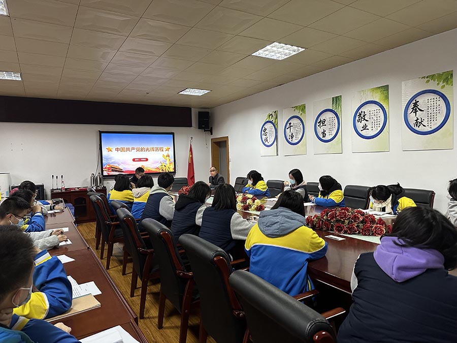 12月8日下午,桂电中学第二期学生党校培训暨开班动员会在四教二楼会议室正式举行。会议由高中第三党支部书记范振伟主持,中学党委委员、督学(副校级)李洪达及 33名高三年级学生团员参加会议。 开班动员会上,范振伟作了会前动员讲话和会议流程介绍,详细解读了高中生积极分子发展工作细则和本期课程培训计划,并对上课纪律进行了强调。 培训环节,李洪达以“中国共产党的光辉历程”为题为全体学员上了一堂精彩纷呈的党课,他结合本期教学要求和教学安排对每位入党积极分子提出三个要求:一是要明确自己的入党动机,二是要在实践中学习如何成为一名合格的党员,三是要端正入党态度。 课上,学员们也积极分享了自己的入党动机,有学员表示:“受家人的影响,爷爷是老党员,在环境的熏陶下对入党产生了向往。”还有学员说道:“通过了解近代史,深刻认识到中国共产党的先进性,从战略到战役,从指挥到方针,处处体现了共产党人的智慧,以及敢于自我革新的革命精神。希望能够加入中国共产党,向优秀的党组织靠拢”。 最后,范振伟宣布,本期开班仪式结束,并预祝全体学员收获满满。 初审:王艳文 终审:杨剑