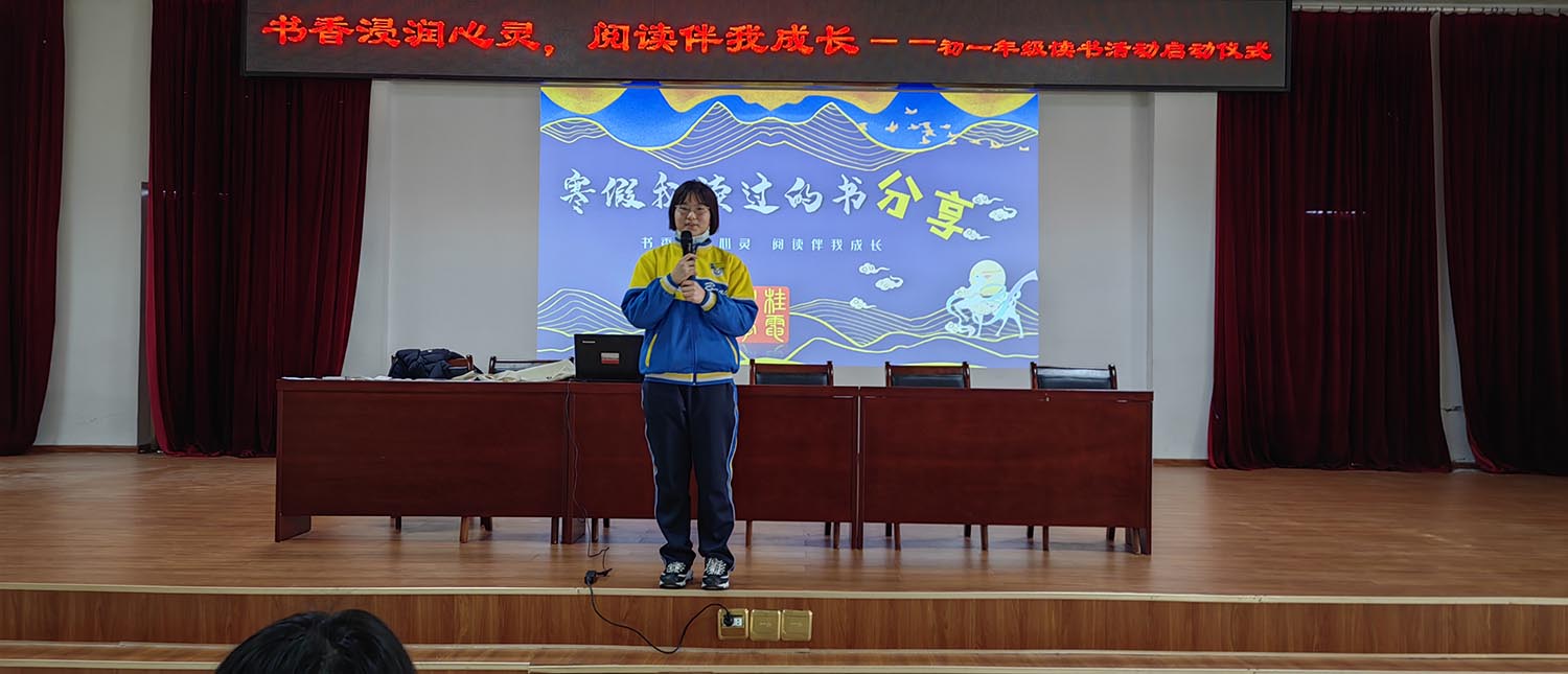 书香浸润心灵 阅读伴我成长——桂电中学初一年级“爱上阅读”主题活动启动仪式时间:[2023-02-24] 来源:初一年级组 点击数:75