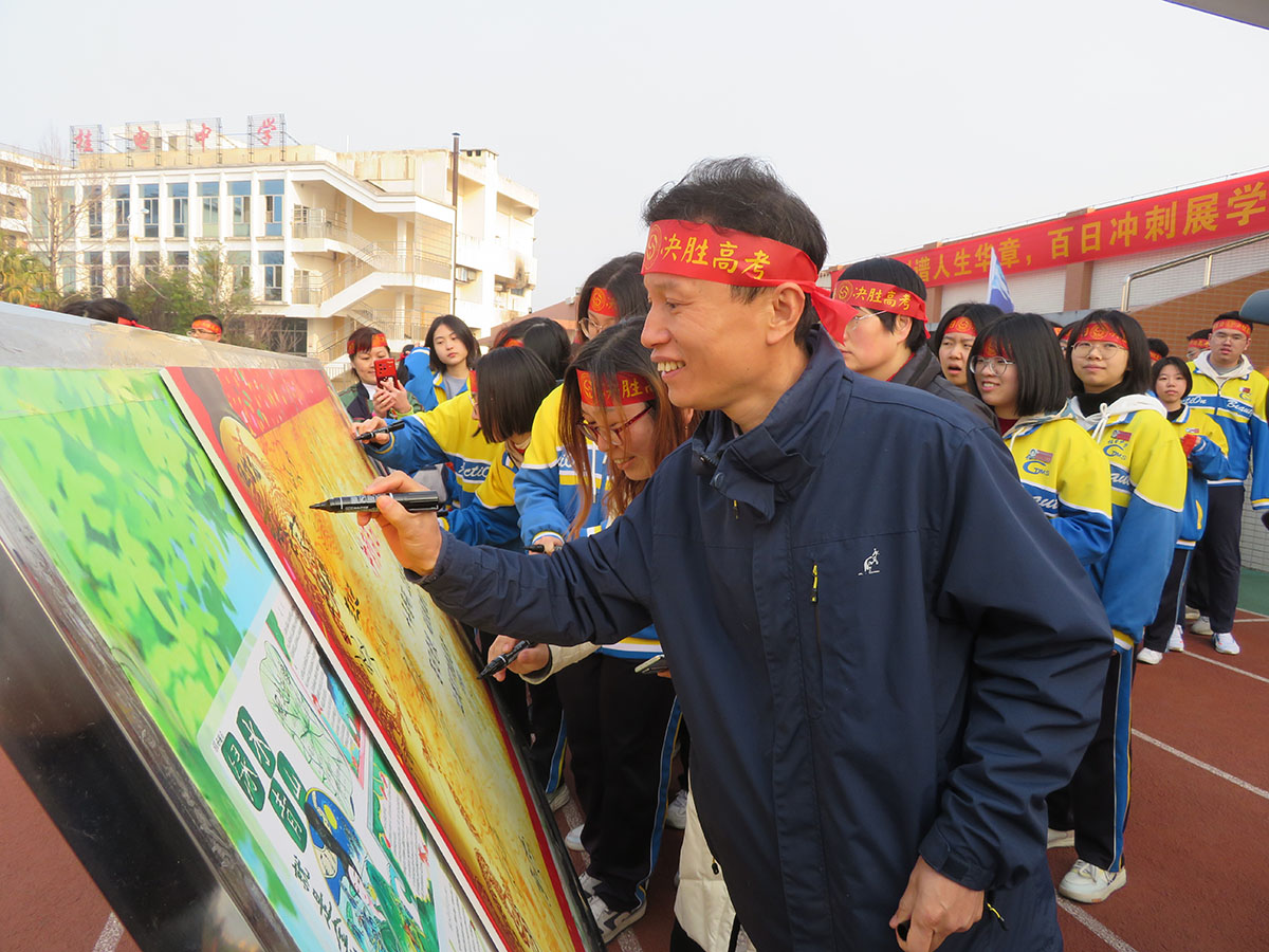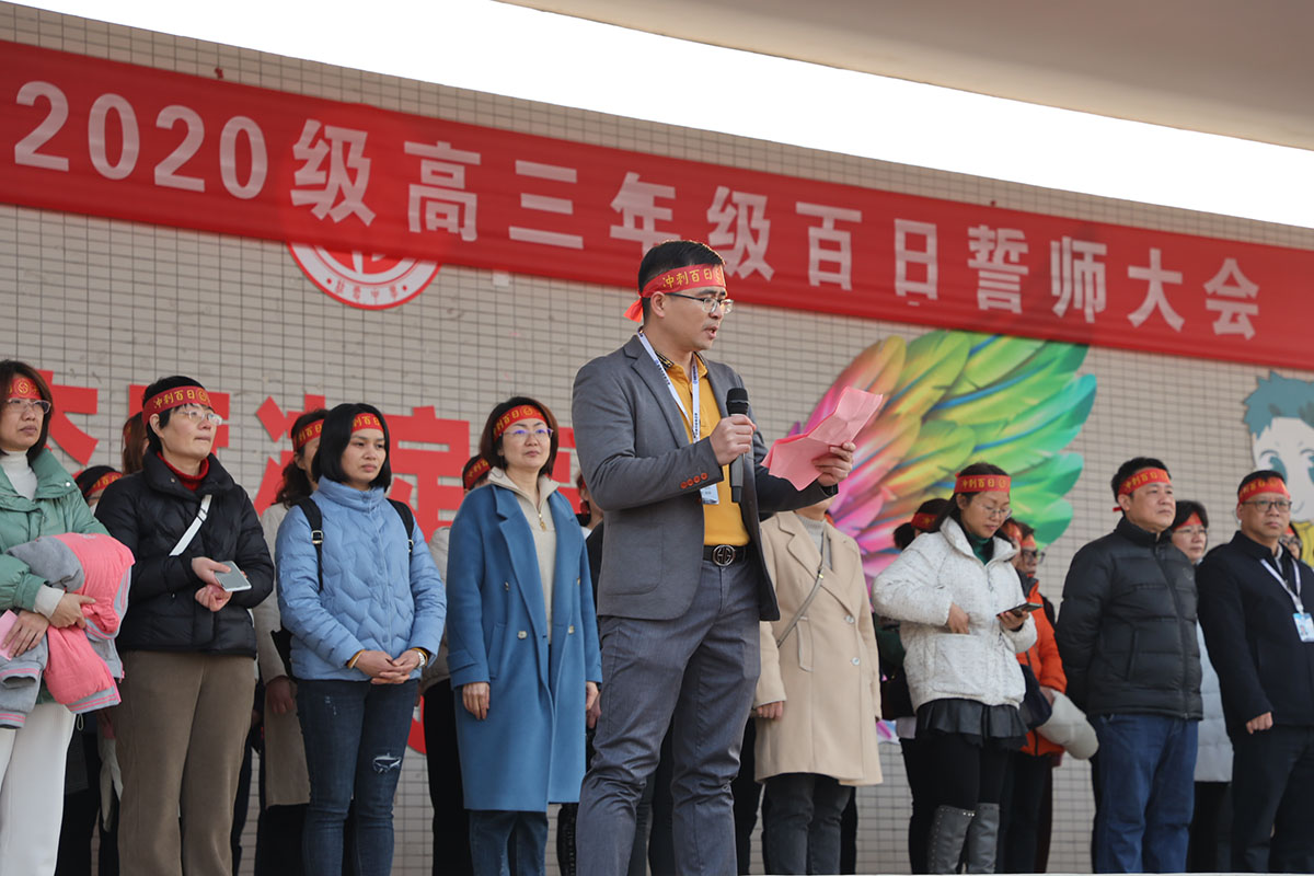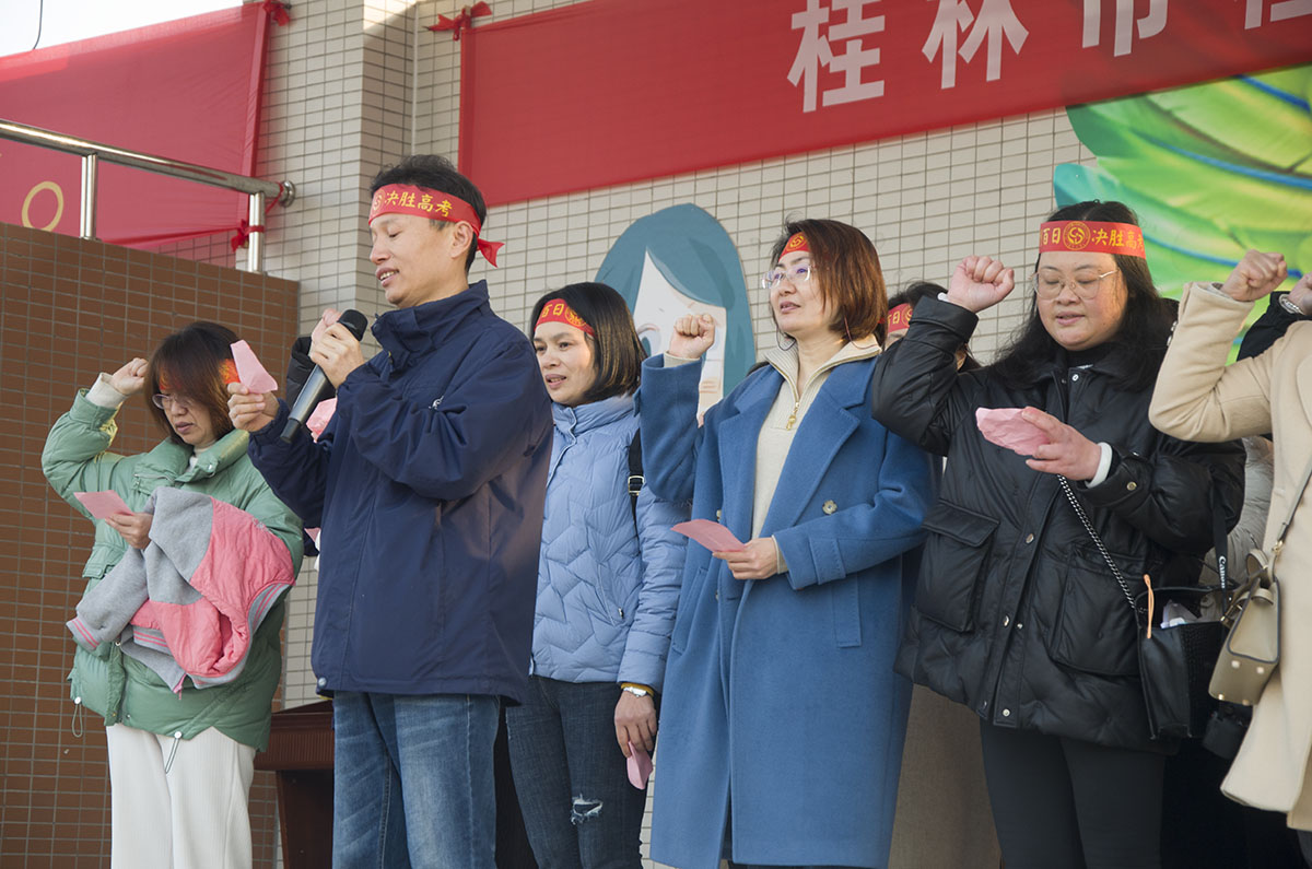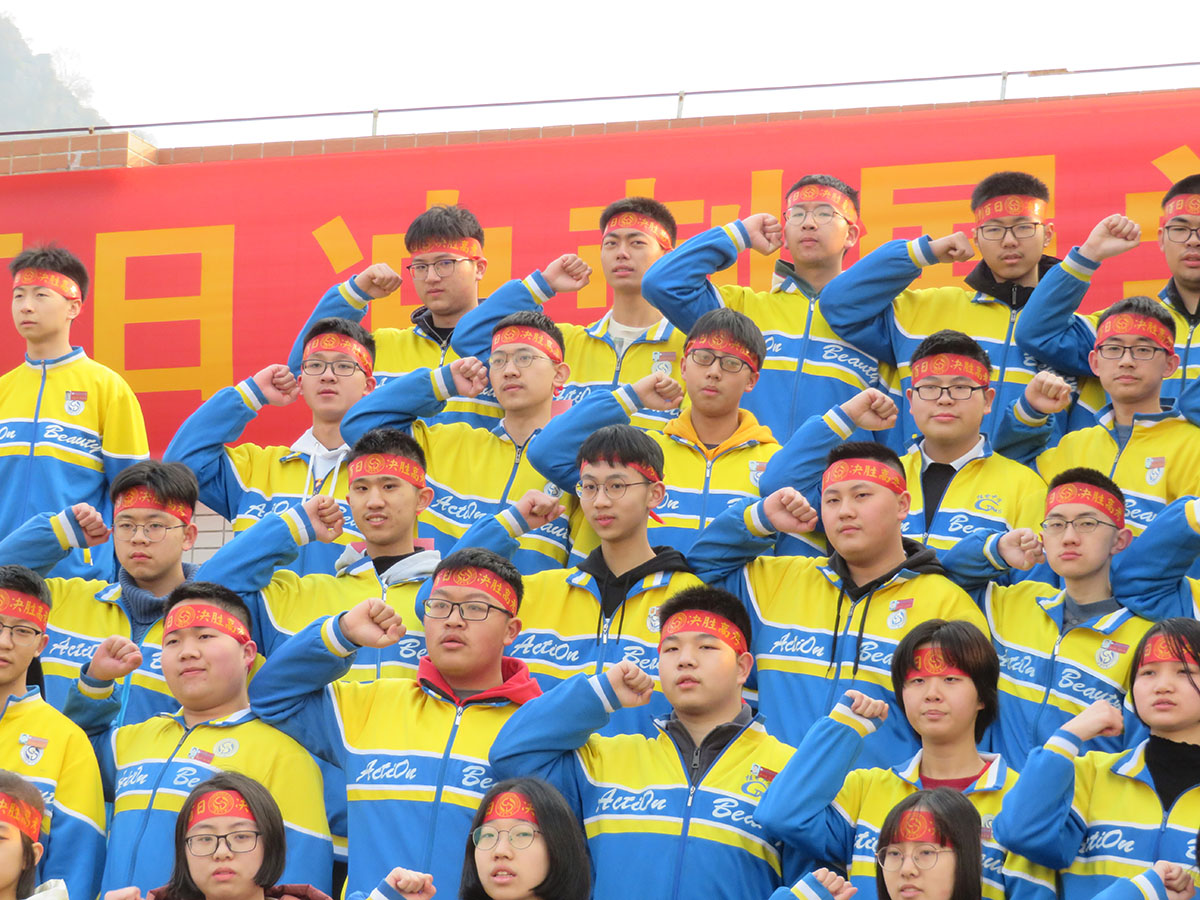 为了激发高三学子的拼搏精神,增强迎战高考的信心。2023年2月27日上午,桂电中学在田径场隆重举行了高考百日誓师大会,桂电中学全体师生及部分家长代表参加了此次誓师大会。 誓师大会在庄严的升旗仪式中拉开了帷幕。 大会第一个环节是学生、老师、家长代表发言。首先,刘光旭同学代表高三学生进行了发言,表达出了高三学子刻苦学习、顽强拼搏的决心,以及蟾宫折桂、舍我其谁的信心。接着,王艳文老师表示,高三教师定会精心备课,用心辅导,甘为人梯,在最后100天全力以赴帮助每一位同学圆梦高考。最后,郭松涛家长作为家长代表作了意味深长的发言,其叮嘱之殷切、祝愿之恳切,浸润着每一位在场学子的心田。 大会第二个环节是师生、家长宣誓。高三全体学生在各班代表同学的领誓下进行了宣誓,表达出以饱满的热情,以昂扬的斗志,最刻苦的精神,最坚韧的毅力,全力以赴,备战2023年高考的决心。高三教师在彭昕老师的领誓下进行了宣誓,表达出团结拼搏,决战百日,倾尽全力,拼搏百天,共铸桂电中学新辉煌的决心。家长代表在王宝程家长领誓下表达出了家长们做好后勤保障的信心。师生的铮铮誓言、家长的殷殷期盼无不在告诉同学们:你们不是一个人在战斗,老师、家长会一直陪伴着你们,和你们并肩作战! 各班代表依次将誓词呈交到见证人彭剑波校长手中。誓言即出,就应铭记于心!誓言即出,就应付诸行动!百日冲刺,高三学子们必将风雨兼程,攻坚克难,勇创辉煌! 除了高三各班豪情万丈的战斗宣言,其他年级的同学们也用助力横幅和响亮整齐的口号为高三学姐学长加油助威。一句句嘹亮的加油声响彻桂电中学校园,师生们精神焕发,热血满腔,将誓师大会推向高潮!极大鼓舞了士气,营造了校园浓厚的备考氛围。 2023年高考已不足一百天,桂电中学学子必将用百倍的努力,扎实的行动,争取优异的成绩,笑傲六月,决胜高考! 升旗仪式 百日誓师大会 教师代表发言 学生代表发言 家长代表宣誓 教师宣誓 班级宣誓 学弟学妹助力 呈交誓词、签名祝福 撰稿:高三年级组 初审:石中瑰 终审:政教处