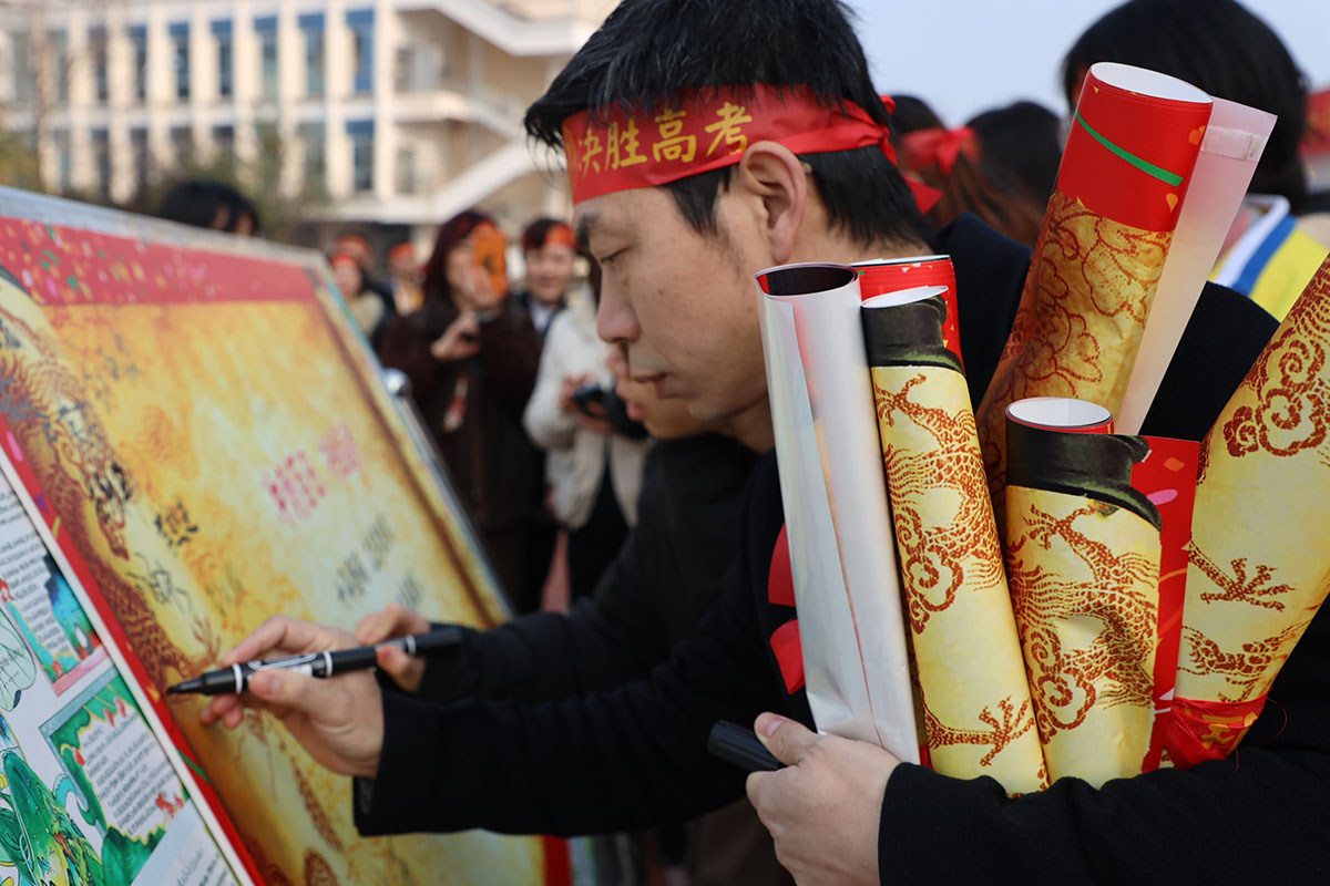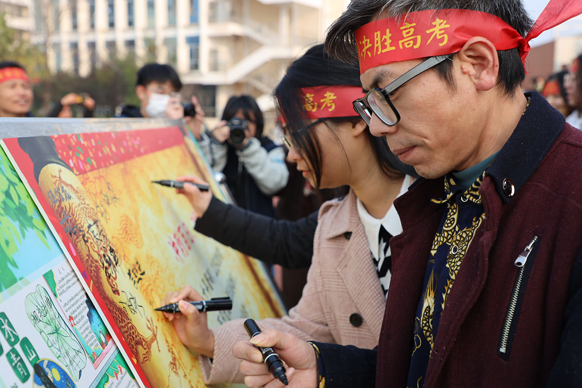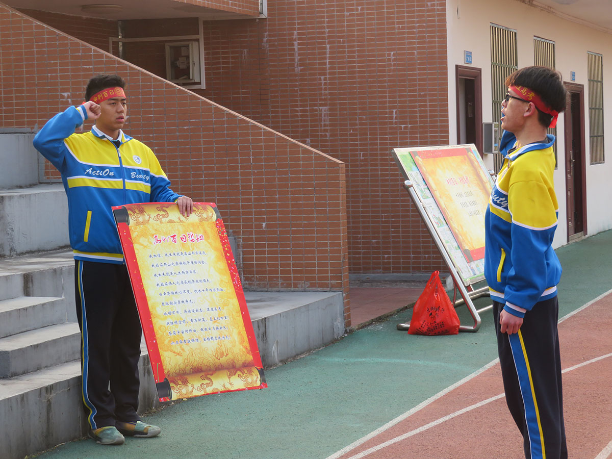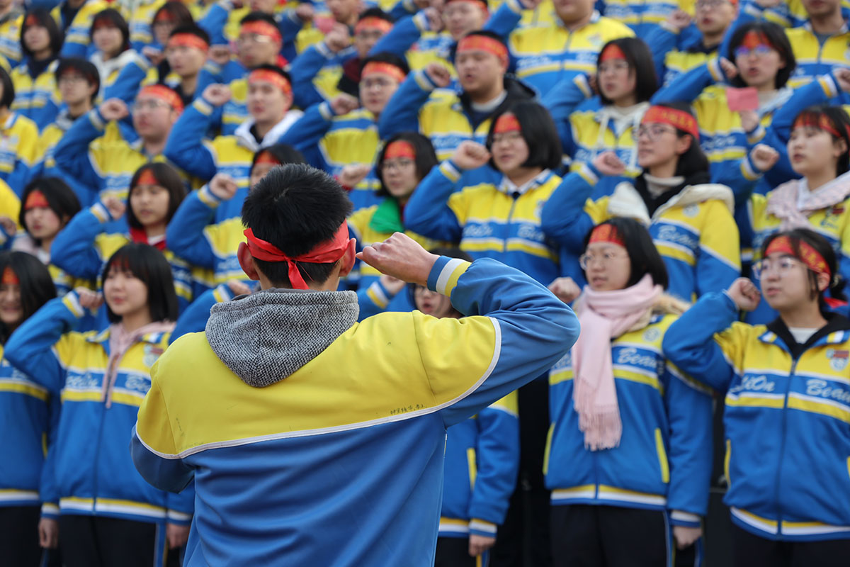 为了激发高三学子的拼搏精神,增强迎战高考的信心。2023年2月27日上午,桂电中学在田径场隆重举行了高考百日誓师大会,桂电中学全体师生及部分家长代表参加了此次誓师大会。 誓师大会在庄严的升旗仪式中拉开了帷幕。 大会第一个环节是学生、老师、家长代表发言。首先,刘光旭同学代表高三学生进行了发言,表达出了高三学子刻苦学习、顽强拼搏的决心,以及蟾宫折桂、舍我其谁的信心。接着,王艳文老师表示,高三教师定会精心备课,用心辅导,甘为人梯,在最后100天全力以赴帮助每一位同学圆梦高考。最后,郭松涛家长作为家长代表作了意味深长的发言,其叮嘱之殷切、祝愿之恳切,浸润着每一位在场学子的心田。 大会第二个环节是师生、家长宣誓。高三全体学生在各班代表同学的领誓下进行了宣誓,表达出以饱满的热情,以昂扬的斗志,最刻苦的精神,最坚韧的毅力,全力以赴,备战2023年高考的决心。高三教师在彭昕老师的领誓下进行了宣誓,表达出团结拼搏,决战百日,倾尽全力,拼搏百天,共铸桂电中学新辉煌的决心。家长代表在王宝程家长领誓下表达出了家长们做好后勤保障的信心。师生的铮铮誓言、家长的殷殷期盼无不在告诉同学们:你们不是一个人在战斗,老师、家长会一直陪伴着你们,和你们并肩作战! 各班代表依次将誓词呈交到见证人彭剑波校长手中。誓言即出,就应铭记于心!誓言即出,就应付诸行动!百日冲刺,高三学子们必将风雨兼程,攻坚克难,勇创辉煌! 除了高三各班豪情万丈的战斗宣言,其他年级的同学们也用助力横幅和响亮整齐的口号为高三学姐学长加油助威。一句句嘹亮的加油声响彻桂电中学校园,师生们精神焕发,热血满腔,将誓师大会推向高潮!极大鼓舞了士气,营造了校园浓厚的备考氛围。 2023年高考已不足一百天,桂电中学学子必将用百倍的努力,扎实的行动,争取优异的成绩,笑傲六月,决胜高考! 升旗仪式 百日誓师大会 教师代表发言 学生代表发言 家长代表宣誓 教师宣誓 班级宣誓 学弟学妹助力 呈交誓词、签名祝福 撰稿:高三年级组 初审:石中瑰 终审:政教处