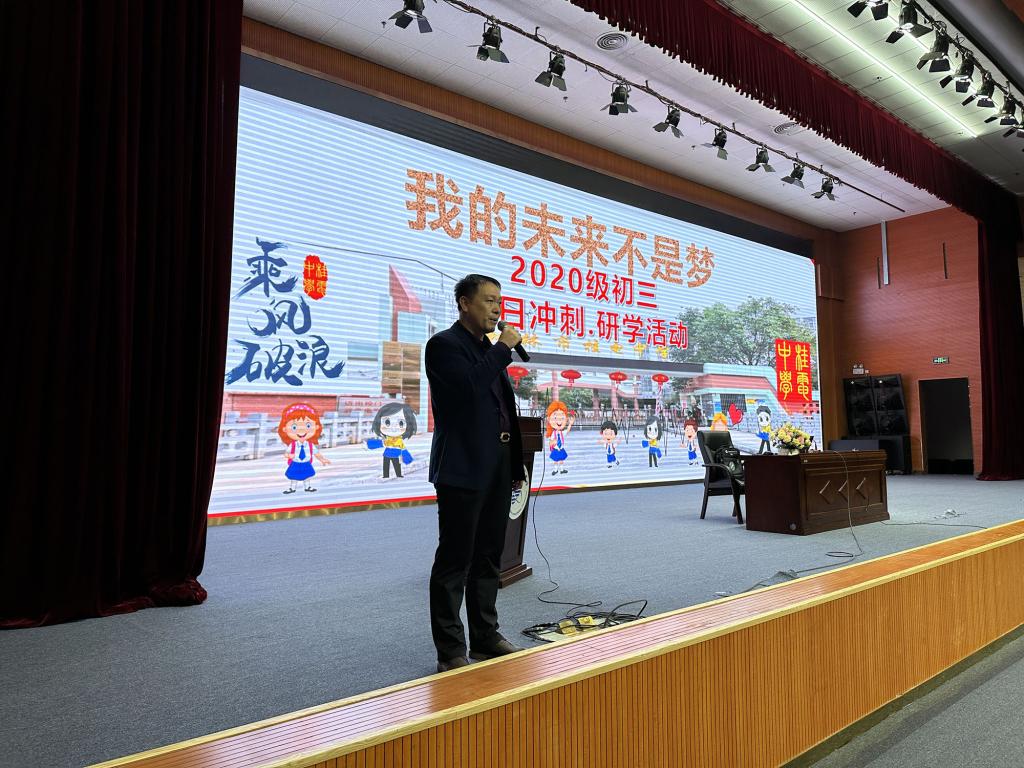 接着,大会进入最为激动人心的时刻,优秀班主任代表蔡峰老师领誓,带领学生进行中考冲刺宣誓。三年磨一剑,六月试锋芒!初三年级定将乘风破浪,直挂云帆!同学们定能承恩师的教诲,伴父母的期盼,记自己的誓言,去奋斗,去拼搏,去创造初三年级中考的新辉煌!最后,学校领导文副校长代表学校向锐意进取、砥砺奋发的同学们致以美好的祝愿!希望每一位同学都能摒弃杂念,拼搏到底,永不言弃。同学们带着必胜的信心和拼搏的力量,踏上了中考新征程!