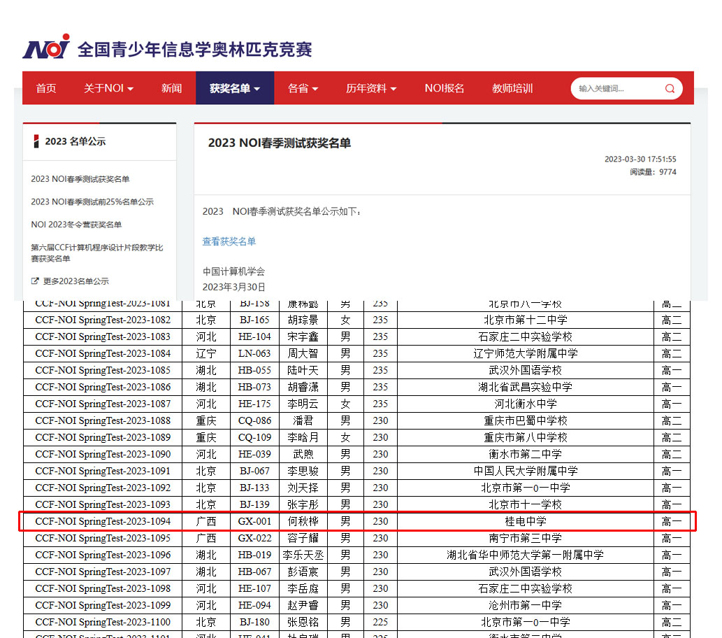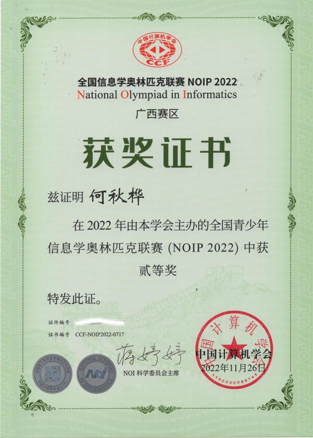 喜报:热烈祝贺三亿官方官网三亿(中国)_三亿(中国)高52班何秋桦同学在2023年全国青少年奥林匹克竞赛NOI 春季测试荣获二等奖。 (指导老师:卢艳梅)时间:[2023-04-15] 来源:教务处 点击数:178