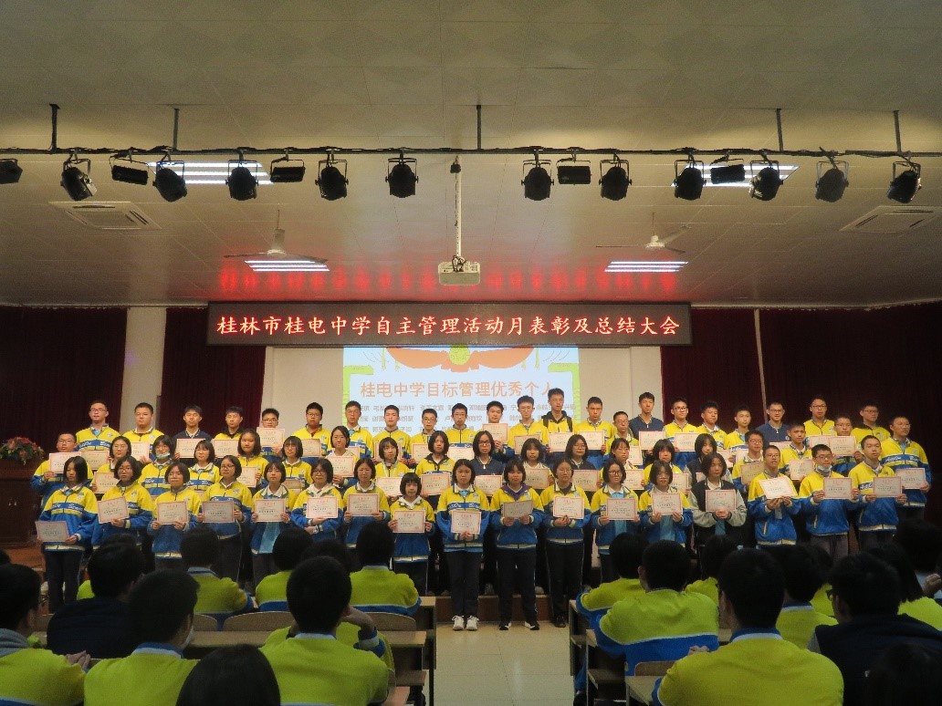 践行自主管理,助力学生成长——桂林市桂电中学举行自主管理活动月总结表彰会时间:[2023-04-19] 来源:政教处 点击数:130